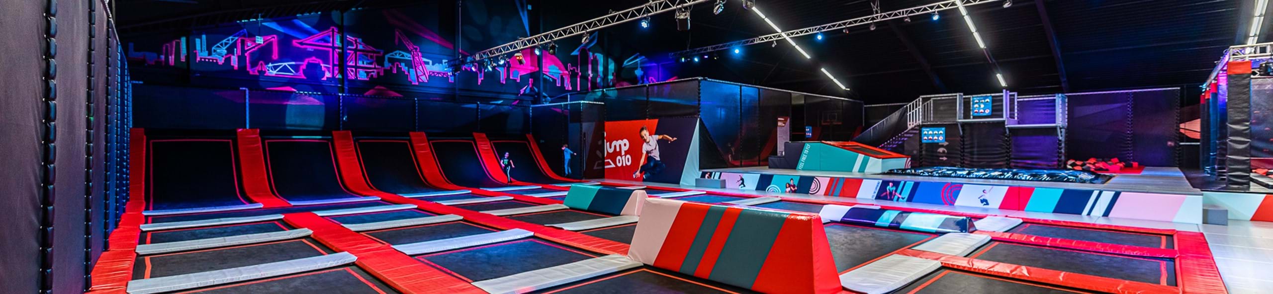 Met 33 aaneengeschakelde trampolines is de Jump Area van Jump-010 een waar walhalla voor iedereen die van Jumpen houdt. Of je nu beginner of gevorderde bent, onze Jump Area is voor iedereen geschikt. Gemaakt volgens de hoogste veiligheidsnormeringen en van Nederlandse fabrikaat. Een betere kwaliteit trampoline ga je simpelweg niet vinden. Oefen en show je tricks in onze Jump Area aan paps en mams die langs de kant zitten, genietend van een bakje koffie. Nog niet helemaal tevreden over je trick? Vraag dan een van onze Jump Masters of hij of zij je advies kan geven.